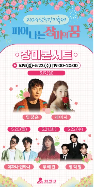 강원도 삼척을 대표하는 삼척장미축제가 2024.5.18~2024. 5.22일까지 5일간 개최됩니다.