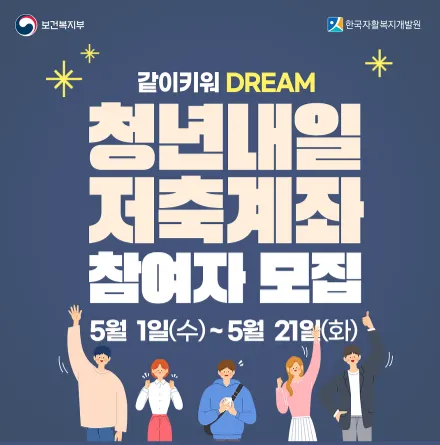 정부에서 청년들의 자산형성과 경제적인 어려움을 해소하기 위해 지원하는 청년내일저축계좌가 5월부터 신청받습니다.